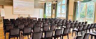 The Sala Pestalozzi disposes of a free wireless internet connection and is ideal for training programs, seminars and conferences. At your disposal are (in part against payment of a fee): Beamer, screen, flip chart, microphones (1 x table, 1 x hand, 2 x headset) with amplifier, Bluetooth connection